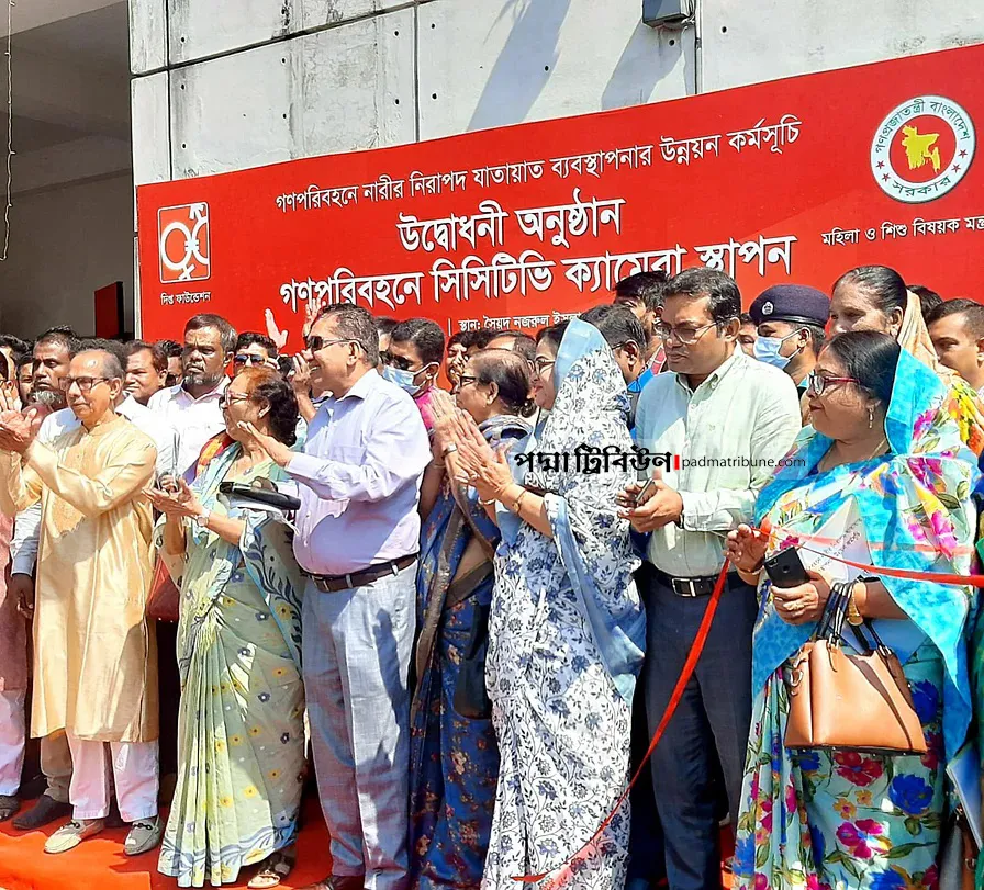 রোববার রাজধানীর মিরপুরের সৈয়দ নজরুল ইসলাম কনভেনশন সেন্টারে ফিতা কেটে এবং প্রজাপতি পরিবহনের একটি বাসে চড়ে সিসি ক্যামেরার আনুষ্ঠানিক উদ্বোধন করেন মহিলা ও শিশুবিষয়ক মন্ত্রণালয়ের প্রতিমন্ত্রী ফজিলাতুন নেসা ইন্দিরা, সচিব মো. হাসানুজ্জামান কল্লোলসহ অন্য অতিথিরা।