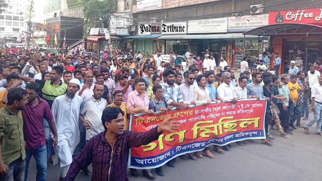 রাজধানীতে টিএনজেড গ্রুপের শ্রমিকদের বিক্ষোভ মিছিল | ছবি: পদ্মা ট্রিবিউন |