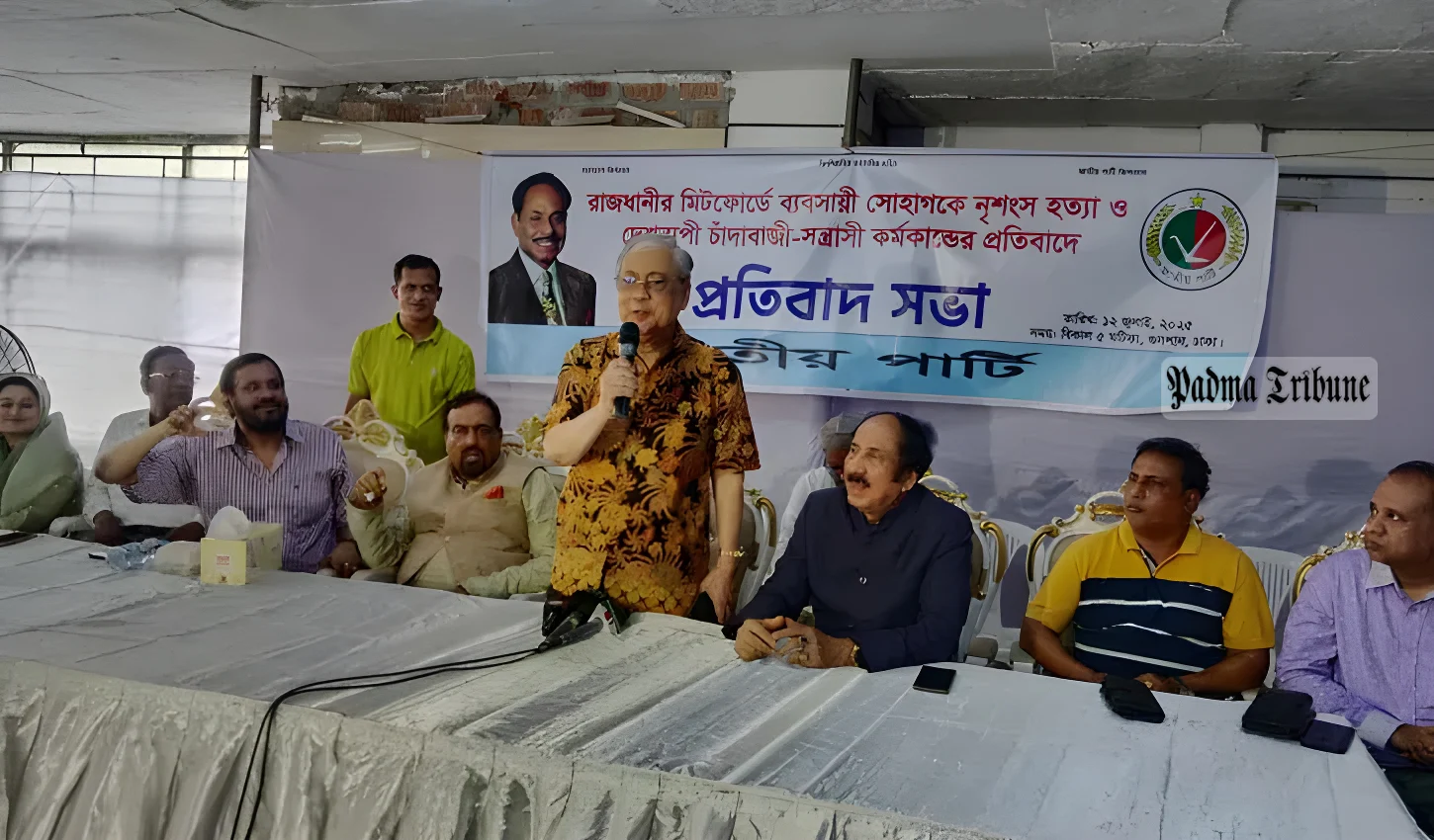 জাতীয় পার্টির সভাপতিমণ্ডলীর সদস্য ও উত্তরের সভাপতি শফিকুল ইসলামের সভাপতিত্বে অনুষ্ঠিত প্রতিবাদ সভায় অন্যদের মধ্যে বক্তব্য দেন সাবেক কো-চেয়ারম্যান সৈয়দ আবু হোসেন বাবলা, জাতীয় পার্টির উত্তরের নেতা জাহাঙ্গীর হোসেন পাঠান, আমানত হোসেন, দক্ষিণের নেতা সারফুদ্দিন আহমেদ, মাসুক আহমেদসহ জাতীয় পার্টির বিভিন্ন সহযোগী সংগঠনের নেতারা।